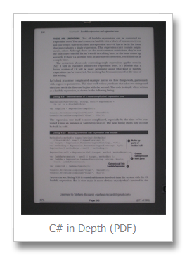 If you are still with me, then let’s see a few examples of how some native (mobi) and PDF books and technical papers are rendered. A word of caution: the quality of the photos themselves is barely tolerable and I apologize for it. On some photos you can see a distinct barrel distortion due to the point and shoot camera I used. You should be able to get an idea anyway.